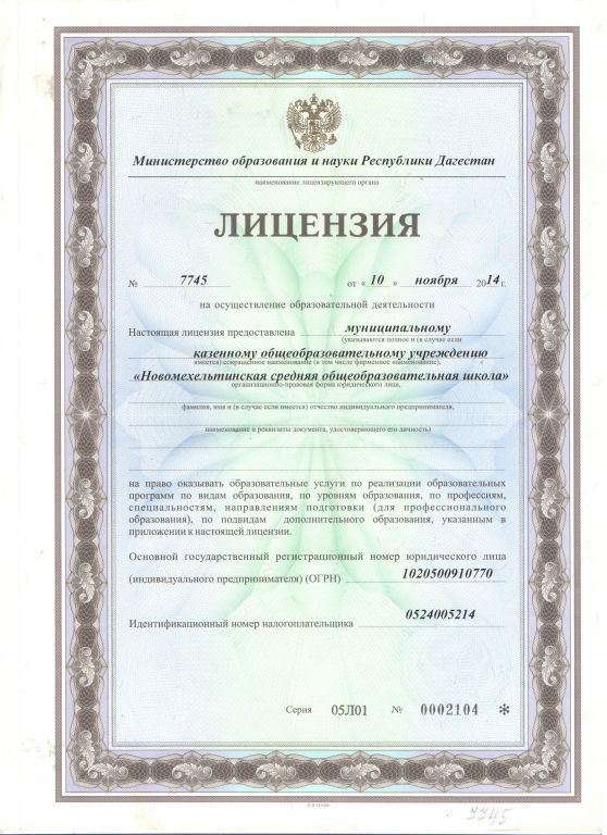 | Адрес местонахождения образовательной организации* | 365045, Республика Дагестан, Новолакский район, село Новомехельта |